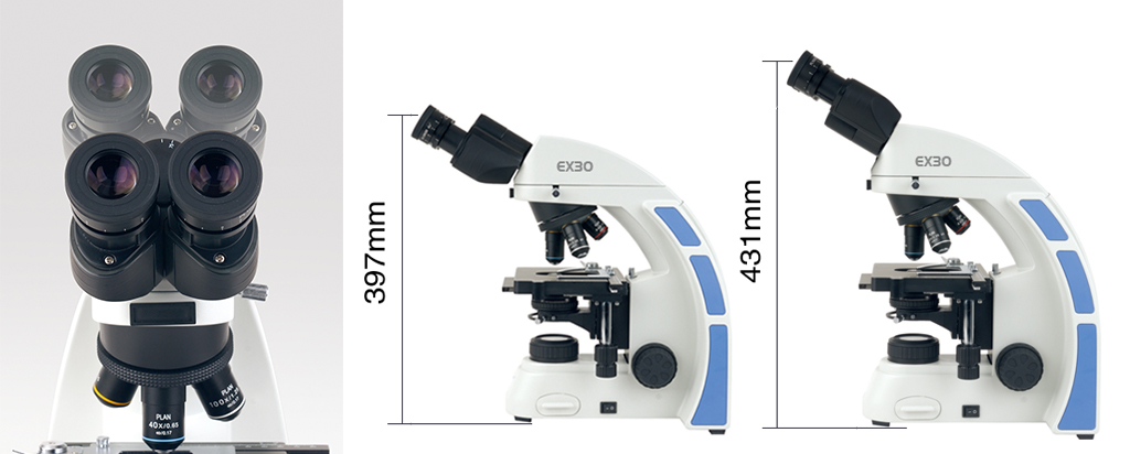 瞳距调节范围,50-75mm,并具有双目筒360°旋转功能。在标准60mm瞳距时,通过旋转双目筒,即可将眼点高度提34mm,方便快捷,取代了传统显微镜中使用眼点提升器来提升观察高度的做法。